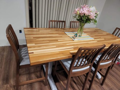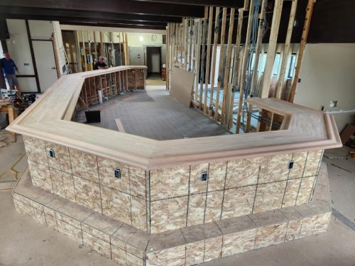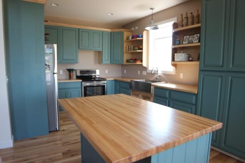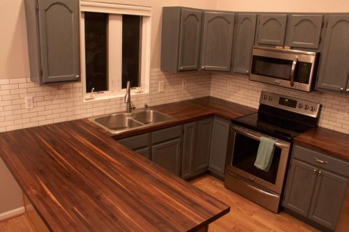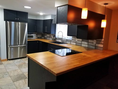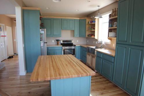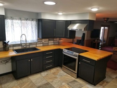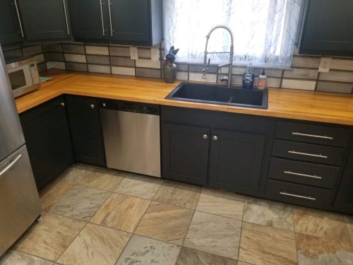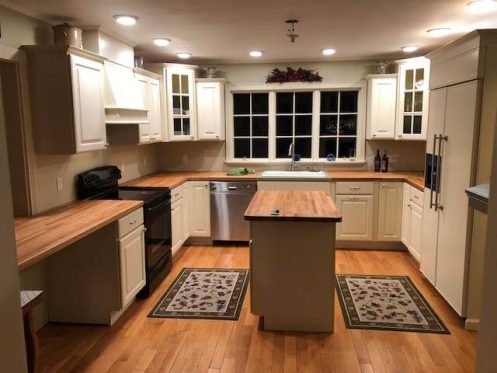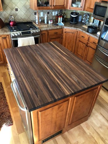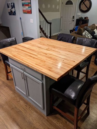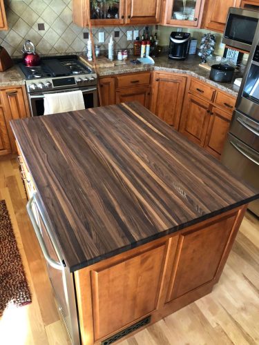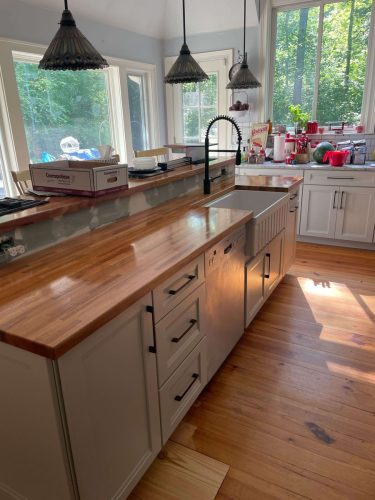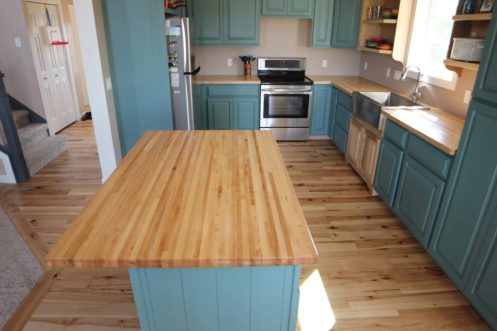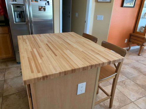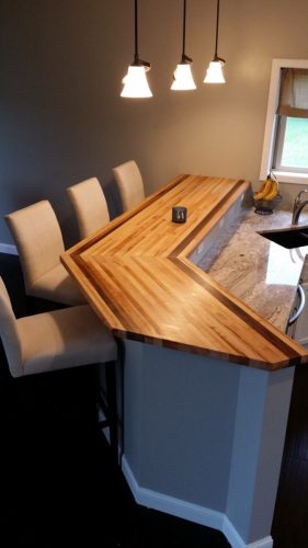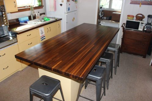 We are usually not the people who install your butcher block kitchen island, restaurant table top, wood countertops, etc., so we have very few pictures of our installed butcher block products. Here are images that were (for the most part) submitted by our customers.